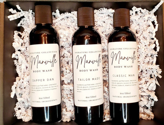 Manville (Men) Sophisticated Man Shea Butter Body Wash Sample Set of 3(4oz)|Gift for him