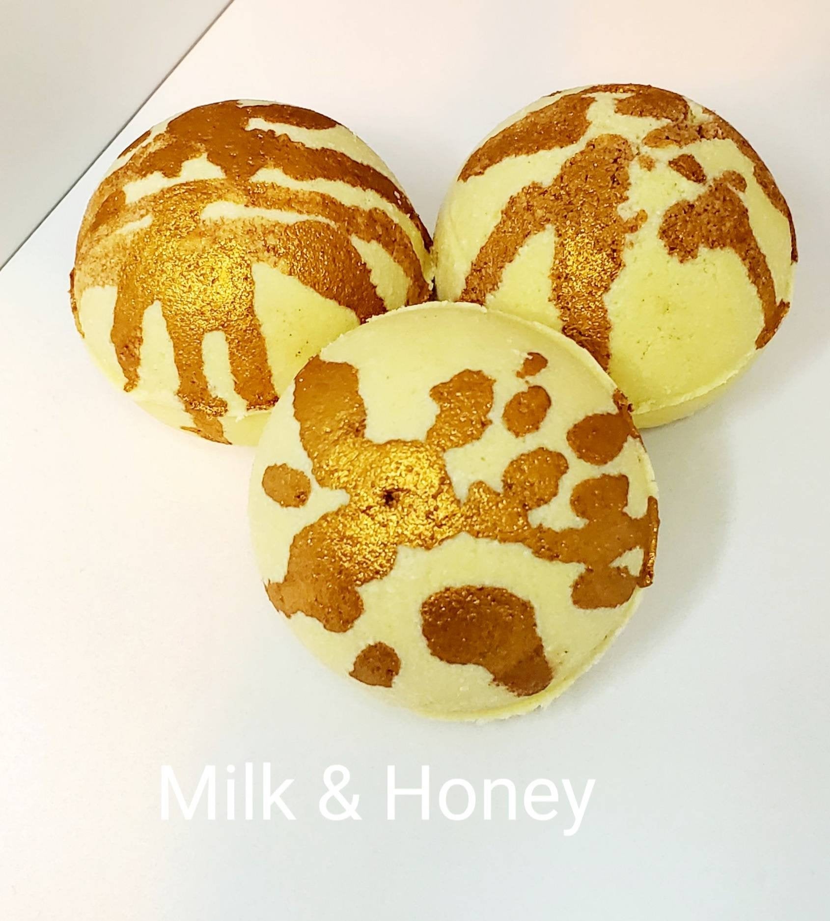 Ingredients: Our handmade bombs are infused with natural essential oils( Shea Butter, Chamomille, Olive Oil, Sunflower, Flaxseed and Avacado) sodium bicarbonate, citric acid arrowroot powder, honey, coconut milk mica, fragrance