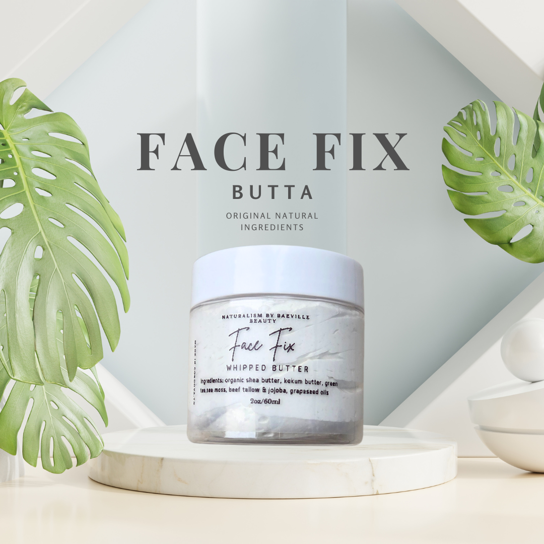 Our Face Fix Butter & Soap Combo is a powerful natural skincare duo designed to gently cleanse and deeply moisturize your face. The handcrafted soap bar combines aloe vera, goat milk, sea moss, beef tallow and green tea to detoxify, brighten, and balance your skin, while the rich, creamy Face Fix Butter melts into your skin to lock in hydration and improve texture.