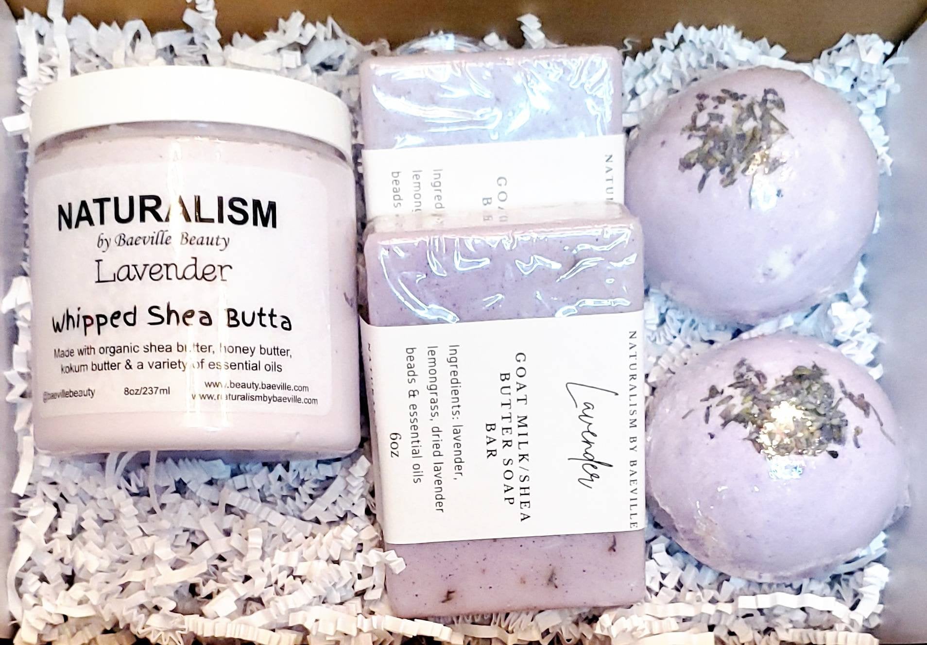 Bundle & Save This bundle includes (1) Lavender or Lavender Chamomille butta (2) Lavender soap bars (2) 5 oz Lavender bath bombs 5oz Lavender is the ultimate go to when relaxation and good sleep is needed.